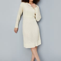 Add a flattering touch with this knit dress is the perfect blend of comfort and style. Featuring a round neck and full sleeves, it offers a cozy fit while the knee-length design adds a flair.