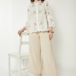 Crafted for comfort with a contemporary twist, these ribbed palazzos feature a wide-leg silhouette and an elasticated waistband for a relaxed yet flattering fit. The ribbed texture adds subtle dimension, making them a versatile base for fusion styling.