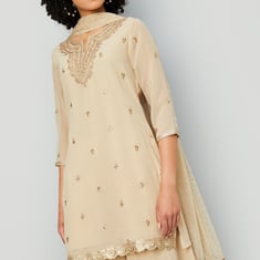 • Style Note : Pair this set with statement earrings and embellished juttis for a graceful ethnic look. Add a sleek clutch to complete your festive ensemble.