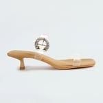 Step into elegance with these kitten heels. Featuring transparent double straps adorned with an embellished buckle for a modern twist, along with a chic square-toe design, these heels seamlessly blend style and comfort.