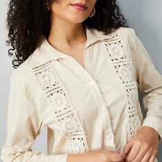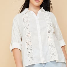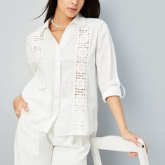 Stay effortlessly cool in this embroidered oversized shirt, designed with a spread collar, classic button closure, and full sleeves with button cuffs. The fit and embroidered detail bring a laid-back yet polished vibe to your wardrobe. Model Size :