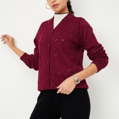 Layer up for the season in classic style with this elegant cardigan. Featuring a knitted pattern for a timeless look, this piece showcases a round neck and full sleeves, making it perfect for layering. The button placket adds a touch of sophistication, allowing you to adjust your style effortlessly.