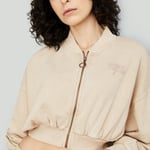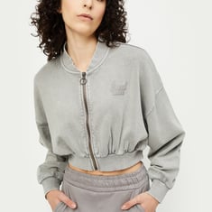 Elevate your athleisure game with this crop jacket. Designed with a trendy baseball collar, full sleeves, and ribbed cuffs and hem, this jacket brings a sporty edge to your look. The front zip closure adds functionality, making it a perfect blend of style and comfort for your casual wardrobe.