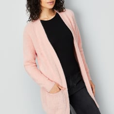 Stay warm and stylish with this long fuzzy yarn cosy cardigan. Featuring an open front design and two pockets, this longline cardigan is perfect for layering during cooler days. Its soft, plush texture offers both comfort and a chic, relaxed look.