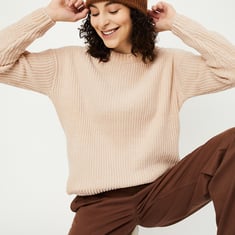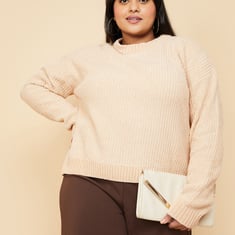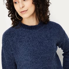 This cosy knitted sweater features a classic round neck, full sleeves, and a ribbed hem for added comfort and style. Its timeless design makes it perfect for layering or wearing on its own during cooler days.