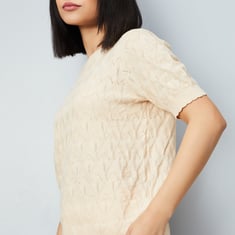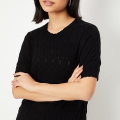 Level up your basics with this knitted top! Featuring a round neck and half sleeves, it offers a comfy, stylish fit that's perfect for layering or wearing on its own.
