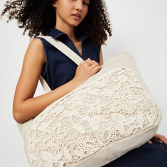 Women Lace Panel Tote Bag