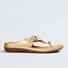 Comfort meets style in this pair of sandals. It has laser cut detailing on the upper with hardware accent, open toe, and comfort footbed with perforated detailing for breathability, and a wedge outsole.