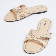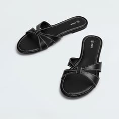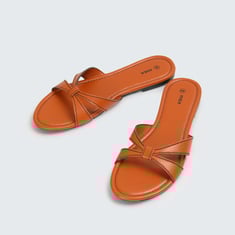 This pair of flat sandals comes with cross strap detailing on the surface and open-toe construction for a comfortable fit.