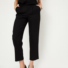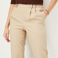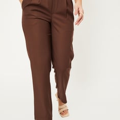 Exude confidence in these classy, straight-leg, regular-fit formal trousers. Featuring a sleek solid surface with a front-pleated design. They come with two convenient side pockets and an elasticated closure for a perfect fit. These trousers offer a refined look, ideal for radiating sophistication.