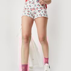 A flattering staple this summer, this pair of hot pants is updated with all-over prints. It features a belt loop waist, 5 pockets, and a raw hem. Team up this pair of shorts with a top and sneakers for a weekend-ready look.