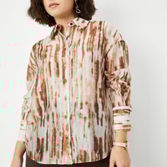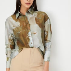 Add a touch of elegance to your wardrobe with this printed blouse, featuring a classic spread collar, button placket, and full sleeves with button cuffs. The subtle print brings a refined and timeless appeal.