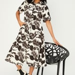 Enhance your casual wardrobe with this standout dress. It is crafted with a spread collar, button-down front, and half sleeves, a waist-defining tie-up string belt, and side pockets. The all-over pattern and the timeless shirt dress silhouette effortlessly contribute to a classic contemporary look.