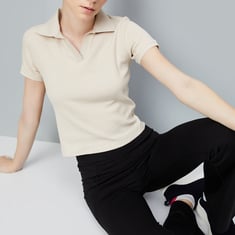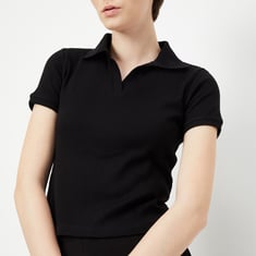 Elevate your street style with this polo T-shirt, featuring a ribbed design and a classic Johnny collar. The half sleeves enhance its trendy yet comfortable vibe, making it a versatile pick for casual outings. Model Size :
