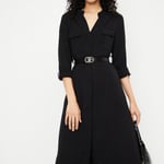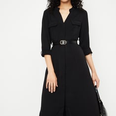 Women Solid Belted Shirt Dress