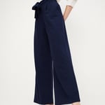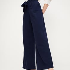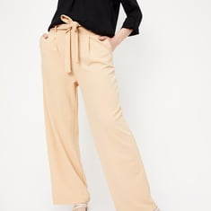 Breeze through the day in style with this pair of trousers. It features a solid finish, a wide-leg silhouette, and a full-length profile. This pair has an elasticated waist with a fabric tie-up and cross pockets for added functionality.
