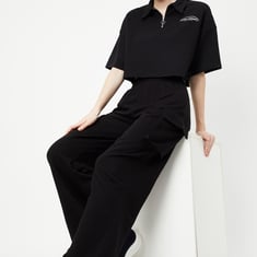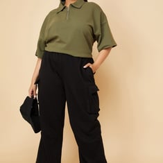 Women Solid Cargo Parachute Pants