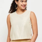 Update your wardrobe with this chaderi top, which is designed with sleeveless and a round neck. The product comes with additional sleeves. Style it with a pair of straight pants and heels for a stylish finish.