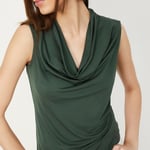 For a statement-making look, look no further than this top. It is highlighted with a cowl neck and a sleeveless construction.