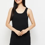 Feel at ease when you wear this fine quality long camisole detailed with a solid surface and a round neck.