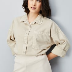 This solid oversized shirt offers a relaxed and stylish look with its spread collar, button placket, and full sleeves with button cuffs. Perfect for layering or wearing on its own, it combines comfort and versatility for both casual and semi-formal occasions