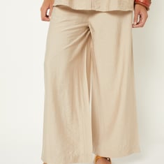Step into effortless elegance with this pair of solid palazzos designed for everyday comfort. Featuring a partially elasticated waist, flared hem, and handy pockets, they offer ease and graceful movement.