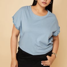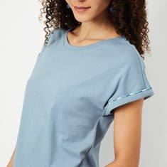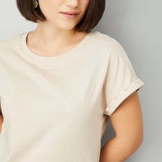 Elevate your casual wardrobe with this solid T-shirt, designed with a round neck and extended half sleeves. The subtle embroidery detail on the sleeve adds a touch of elegance and sophistication, making it perfect for laid-back days. Model Size :