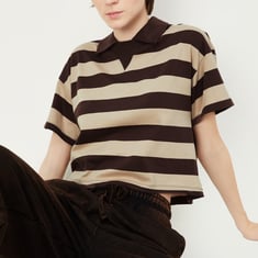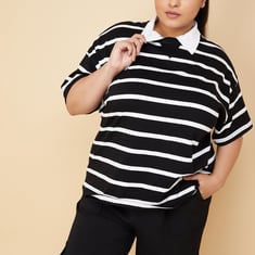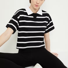 Women Striped Athleisure Polo T-shirt
