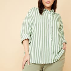 Step up your style game with this striped oversized shirt, a must-have for the ultimate laid-back, trendy look. Featuring a button placket, spread collar, and button cuffs, this shirt offers the perfect mix of classic and cool.