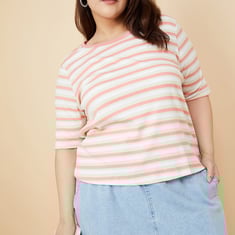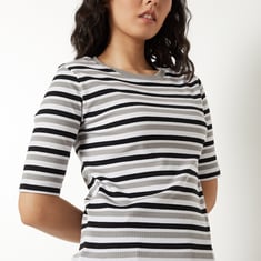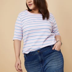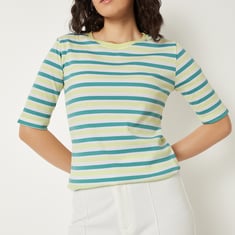 A perfect addition to your casual wardrobe, this T-shirt features a timeless striped pattern. Designed with a round neckline and half sleeves, it effortlessly combines comfort and style for your everyday look.
