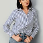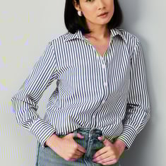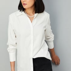 Look effortlessly stylish in this shirt featuring a striped surface, spread collar, long sleeves, and button front. Its versatile design makes it perfect for a casual day out or a relaxed weekend look.