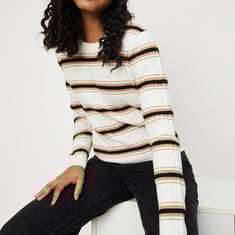 Set yourself for winter with this striped sweater featuring a round neck, full sleeves, and a ribbed hem. The classic striped pattern adds a touch of timeless style, ensuring comfort during chilly days.