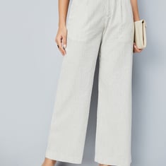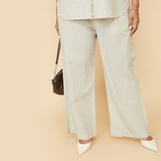 Add a touch of effortless style with these striped wide-leg trousers. Featuring a button closure, belt loops, and convenient insert pockets, they offer both comfort and practicality, making them a chic choice for any casual or semi-formal occasion. Model Size :