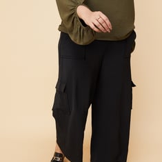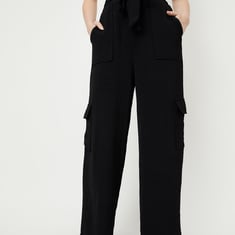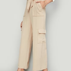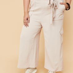 Breeze through the day in style with these trousers. Featuring a textured finish, wide-leg silhouette, and full-length profile, they come with a partially elasticated waist with a fabric tie-up, cross pockets, and cargo pockets for added functionality.