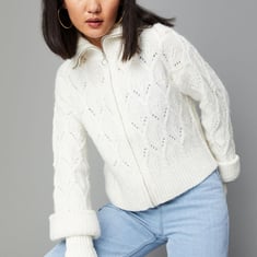 Women Textured Knit Boxy Jacket