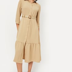 Women Textured Midi Shirt Dress