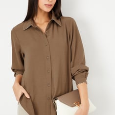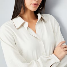This textured shirt offers a refined take on everyday dressing. Designed with a button placket and full sleeves with button cuffs, it brings subtle detail and structure to your wardrobe—perfect for both work and weekend wear. Model Size :