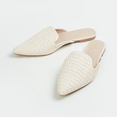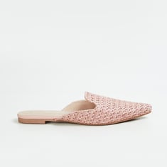 Spruce up your outfit with this pair of mules. It features a woven upper, pointed toe, slip-on profile, printed footbed, and long-lasting outsole.