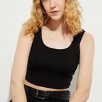 A wardrobe staple, this top is as versatile as it is stylish. With its sleek, ribbed knit construction and round neck, it’s perfect for layering or rocking solo. The sleeveless cut gives off major summer vibes, while the crop fit keeps things fresh and stylish.