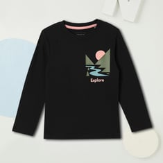 Get your little one vacation-ready with this comfortable and stylish graphic print T-shirt. Featuring full sleeves and a classic crew neck, it's perfect for laid-back days and fun adventures.