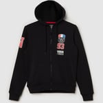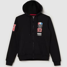 Cosy him up for the season with this sweatshirt that is updated with graphic prints. It features a hooded neck, long sleeves, a split kangaroo pocket, a zip front closure, and ribbed trim.