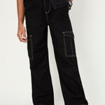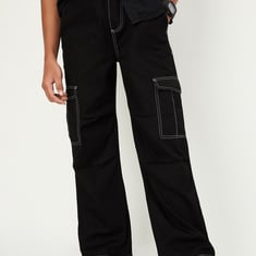 Experience comfort and style for your kid with these solid cargo jeans. They feature belt loops, a button-zip closure, and multiple pockets, including functional cargo pockets. These jeans offer a relaxed and contemporary look, perfect for everyday wear with added practicality.