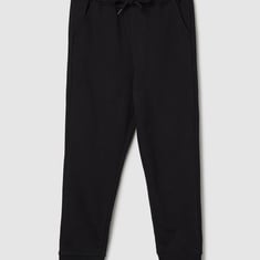 Ensure your little one has a blast during playtime with these cozy and trendy joggers. They feature an elasticated waist with drawstrings, three pockets, and ribbed cuffs. Crafted from comfortable cotton fabric, they guarantee your child's comfort all day long, while the solid pattern adds versatility to their everyday wardrobe.