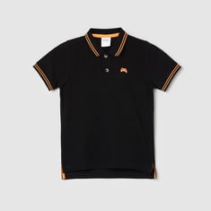 Your child's wardrobe will be spruced up by this solid polo T-shirt with contrast tipping, a polo collar, short sleeves, and a step hem.