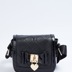 Add a stylish touch to your accessories with this patterned sling bag, featuring a magnetic button closure for secure storage. The detachable heart-shaped pouch adds a playful detail, while the adjustable sling strap ensures comfortable wear. The bow with heart lock adds to the cuteness