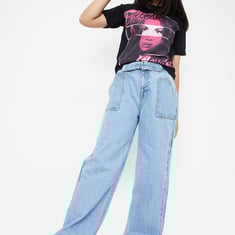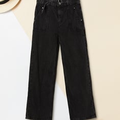 Add a cool, effortless vibe to your wardrobe with these rinsed belted jeans, designed with a classic 4-pocket style. The wide-leg fit offers a laid-back yet trendy look.