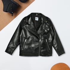 Girls Solid Biker Jacket