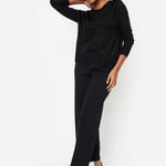 Upgrade your basic wardrobe with this knit top featuring a boat neck, long sleeves, ribbed hem, and side slits. Its stylish design and comfortable fit make it a versatile addition to any outfit.