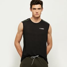An ideal pick for a leisure wardrobe, this sleeveless trendy sports t-shirt is designed with a solid surface and a crew neckline.