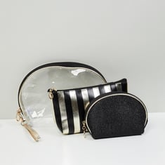 Designed with a printed surface, these set of pouches are complemented with a zip closure and a compartment to carry your daily essentials.